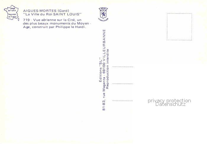 12789381 Aigues-Mortes Gard La Ville du Roi Saint Louis Vue aerienne postalisch nicht gelaufen Erhaltung siehe scans [WerneD78] KatCode: 11170030230003
