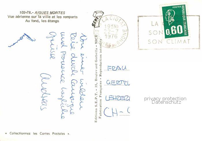 12618807 carte postale Aigues-Mortes Gard La ville et les remparts vue aerienne postalisch gelaufen Erhaltung siehe scans [FriedD77] KatCode: 11170030230003