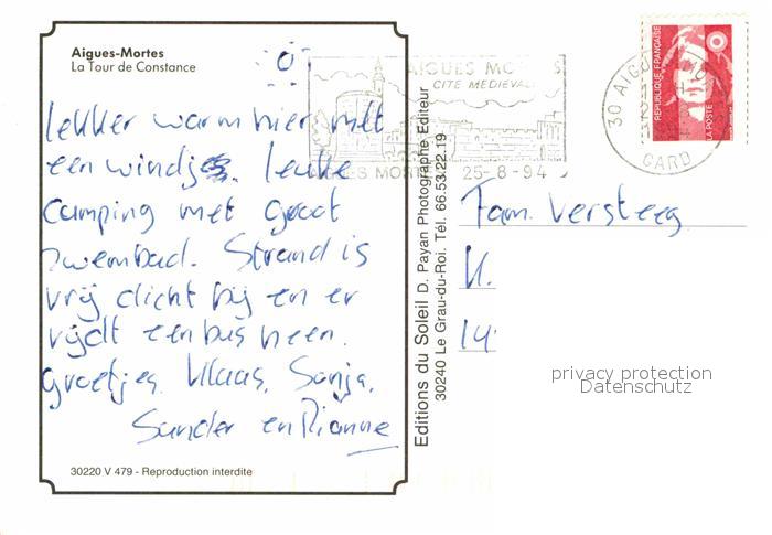 12847799 carte postale Aigues-Mortes Gard Tour de Constance postalisch gelaufen Erhaltung siehe scans [KathaD81] KatCode: 11170030230003