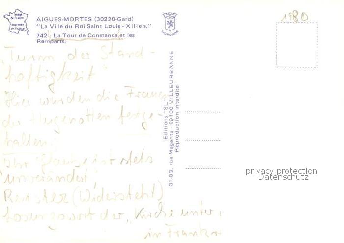 13052696 Aigues-Mortes Gard Tour de Constance postalisch nicht gelaufen Erhaltung siehe scans [KathaD81] KatCode: 11170030230003