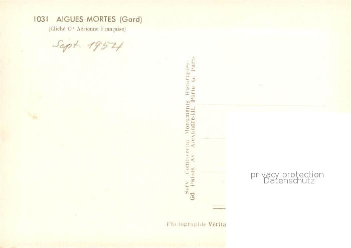 12945650 Aigues-Mortes Gard Vue aerienne postalisch nicht gelaufen Erhaltung siehe scans [FriedD77] KatCode: 11170030230003