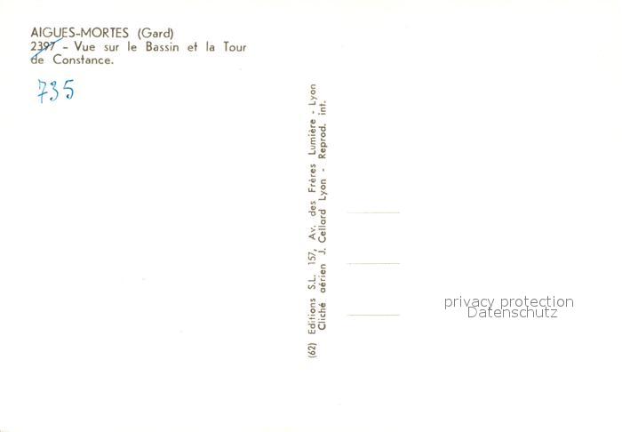 13251981 Aigues-Mortes Gard Vue sur le Bassin et la Tour Constance postalisch nicht gelaufen Erhaltung siehe scans [NatalD47] KatCode: 11170030230003