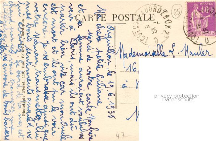 13504990 carte postale Aiguillon Route de Bordeaux vers Nicole postalisch gelaufen Erhaltung siehe scans [FriedD77] KatCode: 11170047147004