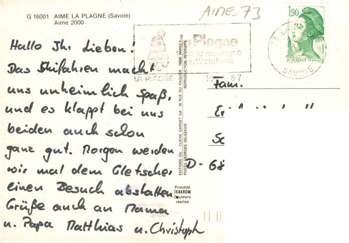 13949336 Aime 73 Savoe La Plagne postalisch gelaufen Erhaltung siehe scans [WerneD78] carte postale Wern Katcode 11170073173006