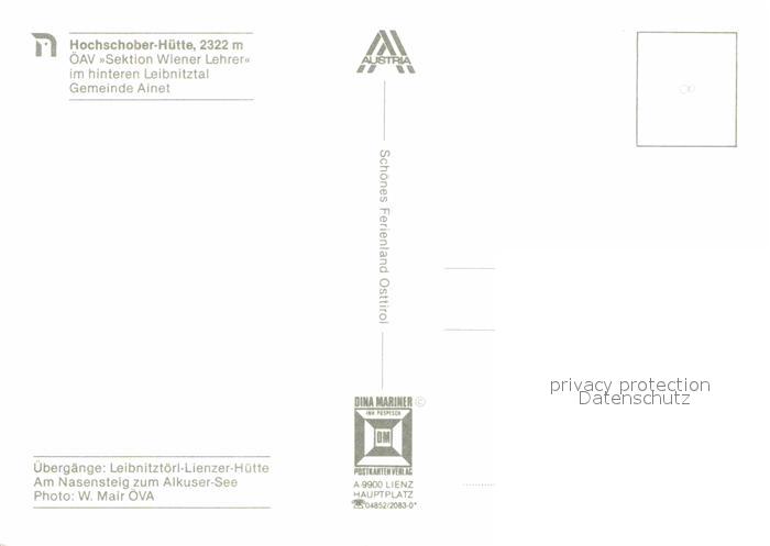 72798083 Ainet Hochschober Huette postalisch nicht gelaufen Erhaltung siehe scans [LiesaD40] KatCode: 11390333070702
