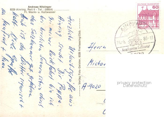 72966429 alte Postkarte Ainring Gebaeude postalisch gelaufen Erhaltung siehe scans [NatalD47] KatCode: 11110009172111