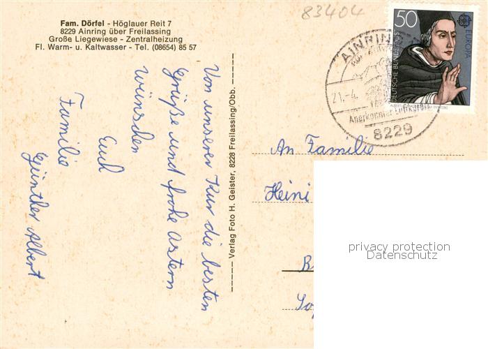 73858353 alte Postkarte Ainring Haus Salzburgblick Gaestehaus Gastraum postalisch gelaufen Erhaltung siehe scans [FriedD77] KatCode: 11110009172111