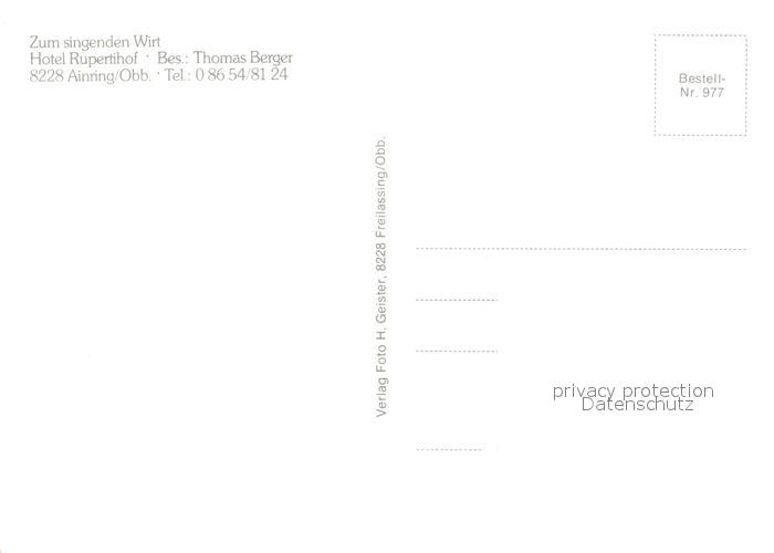 73598840 Ainring Hotel Rupertihof Zum singenden Wirt postalisch nicht gelaufen Erhaltung siehe scans [PaolaD17] KatCode: 11110009172111