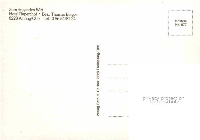 72668827 Ainring Hotel Rupertihof zum singenden Wirt postalisch nicht gelaufen Erhaltung siehe scans [LiesaD40] KatCode: 11110009172111