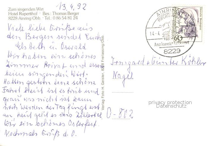 73647770 alte Postkarte Ainring Hotel Rupertihof Zum singenden Wirt Gastraeume postalisch gelaufen Erhaltung siehe scans [WerneD78] KatCode: 11110009172111