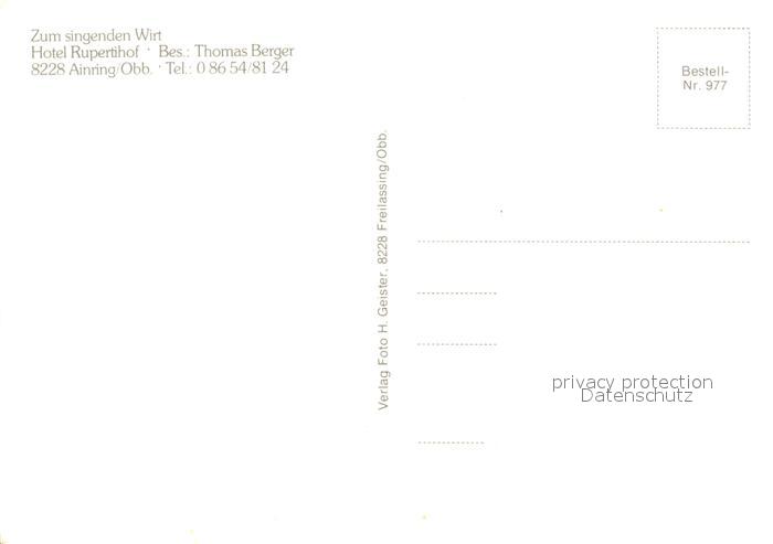 73660371 Ainring Hotel Rupertihof Zum singenden Wirt Restaurant Hausmusik Panorama Alpen postalisch nicht gelaufen Erhaltung siehe scans [FriedD77] KatCode: 11110009172111
