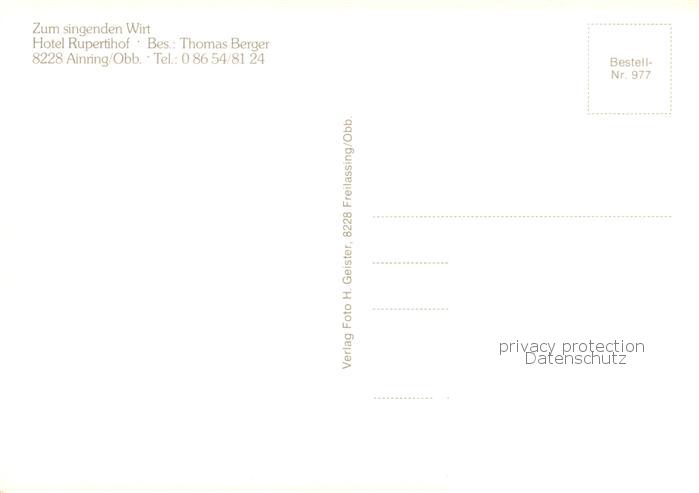 73858845 Ainring Hotel Rupertihof Zum singenden Wirt Restaurant Panorama postalisch nicht gelaufen Erhaltung siehe scans [FriedD77] KatCode: 11110009172111