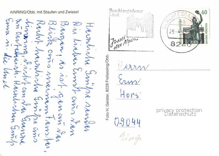 72698303 alte Postkarte Ainring mit Staufen und Zwiesel postalisch gelaufen Erhaltung siehe scans [WerneD78] KatCode: 11110009172111