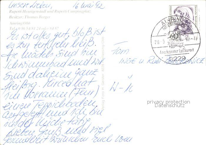 72071920 alte Postkarte Ainring Ruperti Heurigenstadl Campingplatz postalisch gelaufen KatCode: 11110009172111