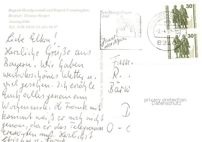 73653422 alte Postkarte Ainring Ruperti Heurigenstadl Ruperti Camping Platz Gastraeume postalisch gelaufen Erhaltung siehe scans [WerneD78] KatCode: 11110009172111