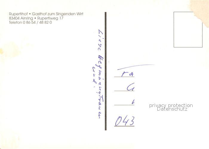 73651601 Ainring Rupertihof Gasthof Zum singenden Wirt postalisch nicht gelaufen Erhaltung siehe scans [FriedD77] KatCode: 11110009172111