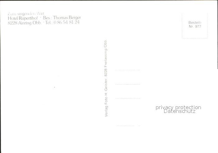 72076755 Ainring Zum singenden Wirt Hotel Rupertihof postalisch nicht gelaufen Erhaltung siehe scans KatCode: 11110009172111
