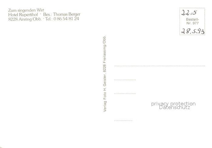 73664652 Ainring Zum singenden Wirt Hotel Rupertihof Gastraeume postalisch nicht gelaufen Erhaltung siehe scans [WerneD78] KatCode: 11110009172111