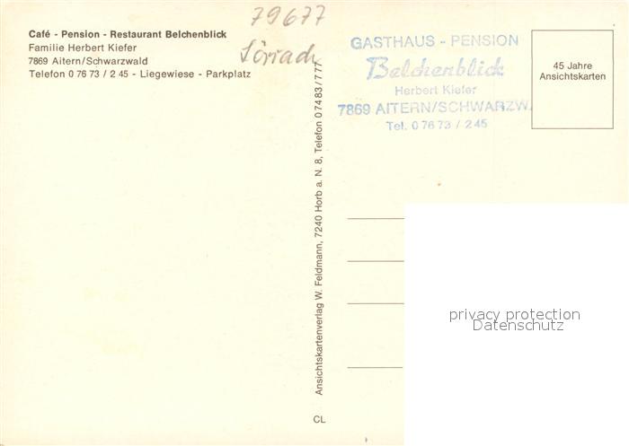 73323349 Aitern Cafe Pension Restaurant Belchenblick Landschaftspanorama Schwarzwald postalisch nicht gelaufen Erhaltung siehe scans [FriedD77] KatCode: 11110008336004