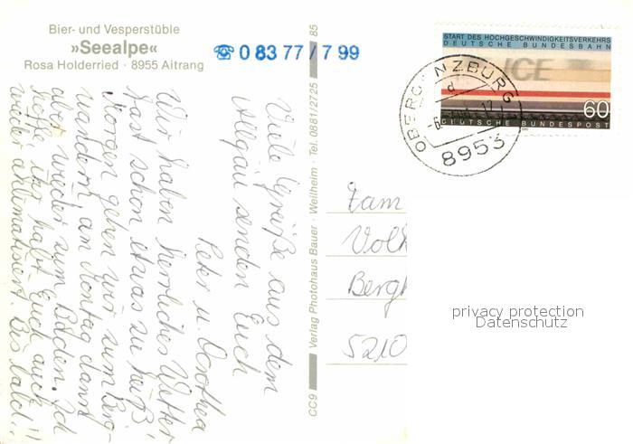 72756544 alte Postkarte Aitrang Bier und Vesperstube Seealpe postalisch gelaufen Erhaltung siehe scans [WerneD78] KatCode: 11110009777111