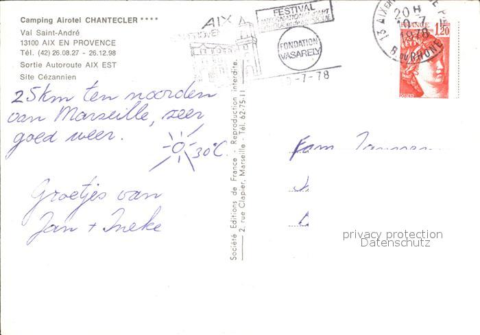 12034416 carte postale Aix-en-Provence Camping Airotel Chantecler postalisch gelaufen Erhaltung siehe scans KatCode: 11170013113001