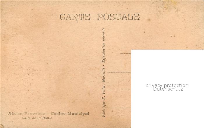 13513617 Aix-en-Provence Casino Municipal Salle de la Boule postalisch nicht gelaufen Erhaltung siehe scans [FriedD77] KatCode: 11170013113001