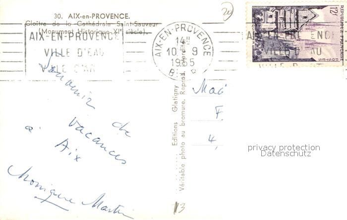 13493824 carte postale Aix-en-Provence Cloitre de la Cathedrale Saint Sauveur postalisch gelaufen Erhaltung siehe scans [WerneD78] KatCode: 11170013113001