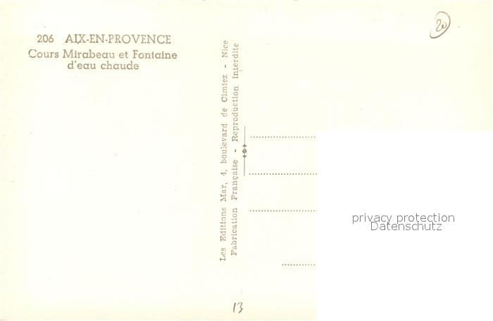 13493816 Aix-en-Provence Cours Mirabeau et Fontaine d’eau chaude postalisch nicht gelaufen Erhaltung siehe scans [WerneD78] KatCode: 11170013113001