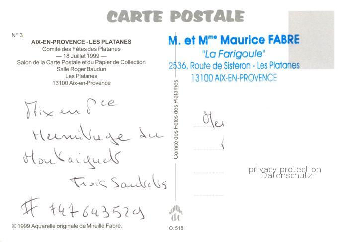 13535378 Aix-en-Provence Fêtes des Platanes Kuenstlerkarte postalisch nicht gelaufen Erhaltung siehe scans [FriedD77] KatCode: 11170013113001