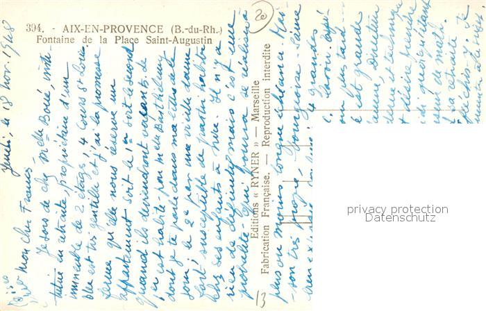 13493826 Aix-en-Provence Fontaine de la Place Saint Augustin postalisch nicht gelaufen Erhaltung siehe scans [WerneD78] KatCode: 11170013113001