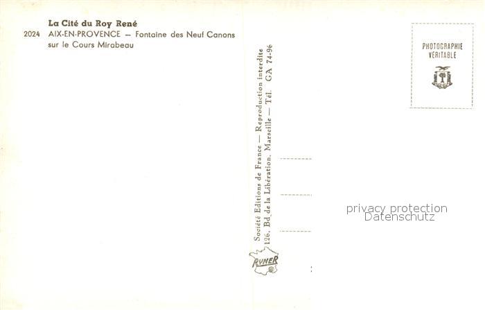 13513690 Aix-en-Provence Fontaine des Neuf Canons sur le Cours Mirabeau postalisch nicht gelaufen Erhaltung siehe scans [FriedD77] KatCode: 11170013113001