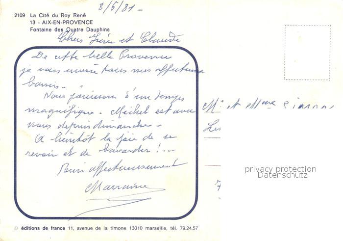 13581413 Aix-en-Provence Fontaine des Quatre Dauphine postalisch nicht gelaufen Erhaltung siehe scans [WerneD78] KatCode: 11170013113001