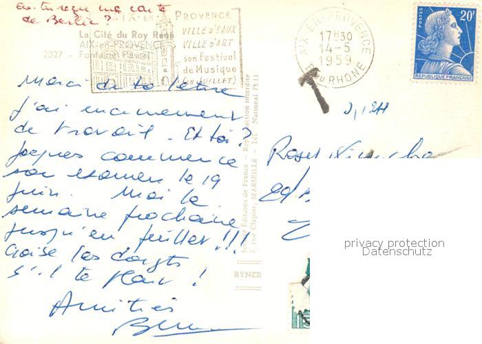 13296540 carte postale Aix-en-Provence Fontaine Pascal postalisch gelaufen Erhaltung siehe scans [WerneD78] KatCode: 11170013113001