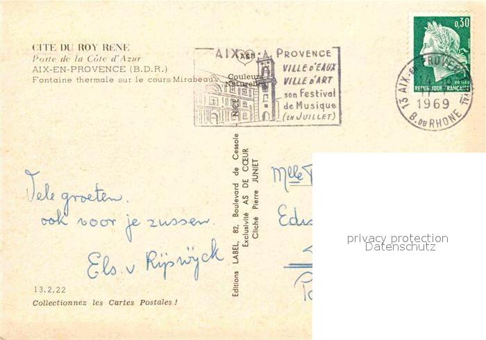12688014 carte postale Aix-en-Provence Fontaine thermale sur le cours Mirabeau Cote du Roy Rene postalisch gelaufen Erhaltung siehe scans [FriedD77] KatCode: 11170013113001