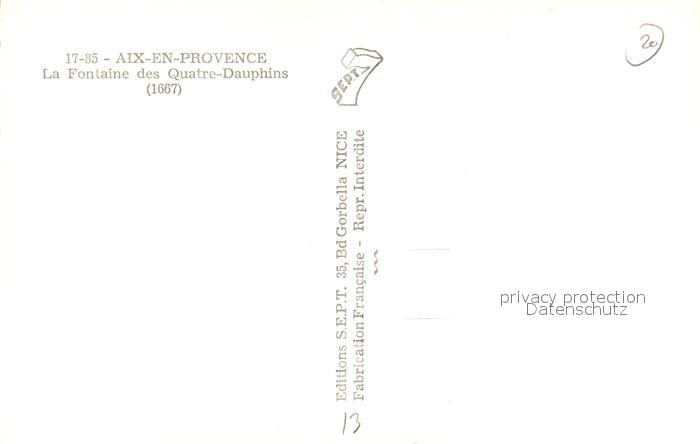 13493814 Aix-en-Provence La Fontaine des Quatre Dauphins postalisch nicht gelaufen Erhaltung siehe scans [WerneD78] KatCode: 11170013113001