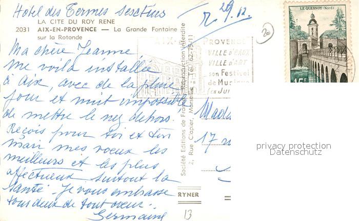 13493819 carte postale Aix-en-Provence La Grande Fontaine sur la Rotonde postalisch gelaufen Erhaltung siehe scans [WerneD78] KatCode: 11170013113001