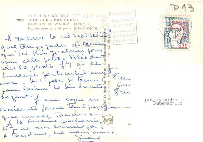 13582554 Aix-en-Provence Pavillon de Vendome Facade principale et jardin a la Francaise postalisch gelaufen Erhaltung siehe scans [WerneD78] carte postale Wern Katcode 11170013113001