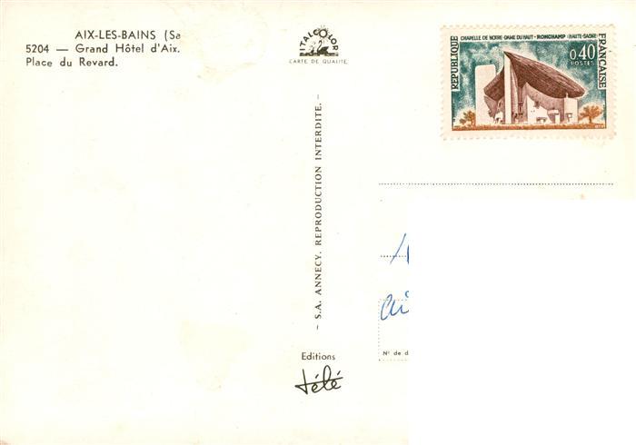 13885157 Aix-les-Bains 73 Savoie Grand Hotel d’Aix Place du Revard postalisch nicht gelaufen Erhaltung siehe scans [WerneD78] Wern Katcode 11170073273008