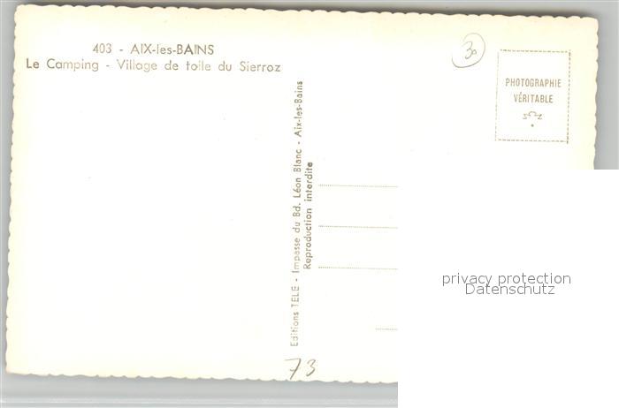 13489868 Aix-les-Bains Camping Village de toile du Sierroz Alpes postalisch nicht gelaufen Erhaltung siehe scans [FriedD77] KatCode: 11170073273008