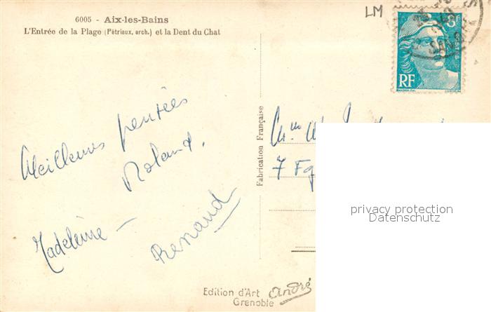 13534859 carte postale Aix-les-Bains Entree de la Plage et la Dent du Chat postalisch gelaufen Erhaltung siehe scans [WerneD78] KatCode: 11170073273008