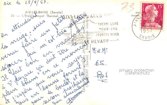 13570668 carte postale Aix-les-Bains Etablissement Thermal postalisch gelaufen Erhaltung siehe scans [WerneD78] KatCode: 11170073273008