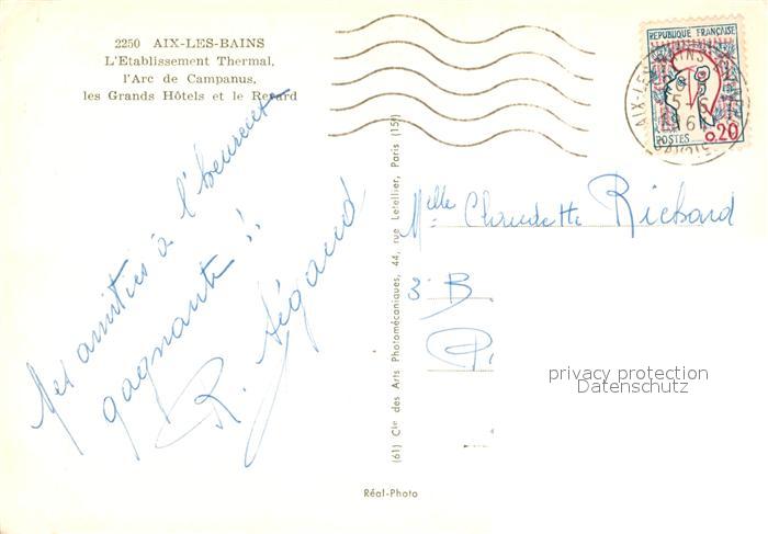13545726 carte postale Aix-les-Bains Etablissement Thermal l’Arc de Campanus les Grands Hotels postalisch gelaufen Erhaltung siehe scans [WerneD78] KatCode: 11170073273008