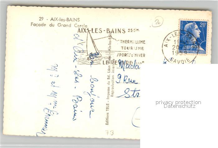 13489908 carte postale Aix-les-Bains Facade du Grand Cercle postalisch gelaufen Erhaltung siehe scans [FriedD77] KatCode: 11170073273008