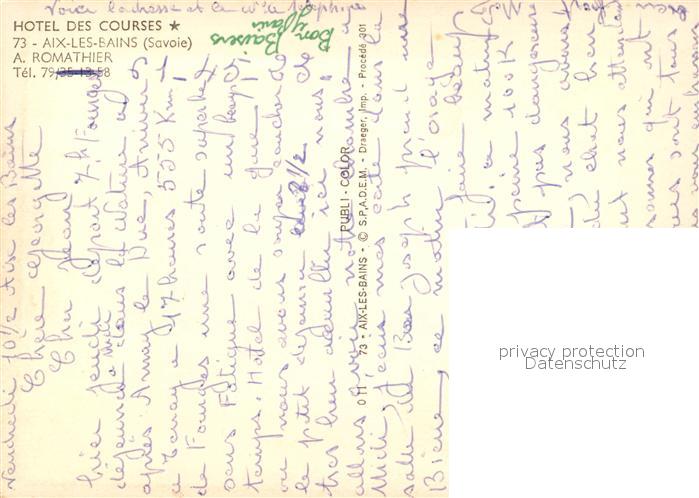 13520475 Aix-les-Bains Hotel des Courses postalisch nicht gelaufen Erhaltung siehe scans [KathaD81] KatCode: 11170073273008