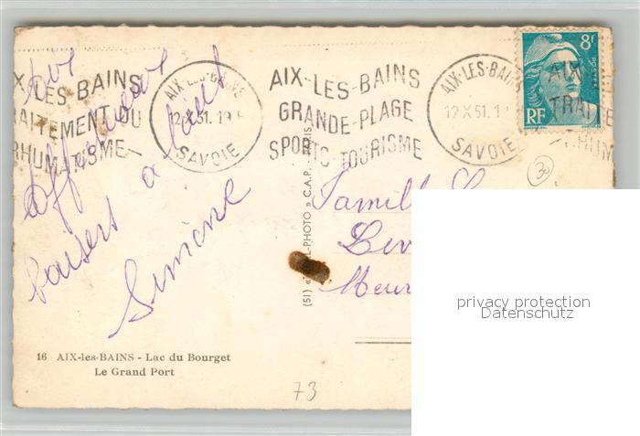 13489776 carte postale Aix-les-Bains Lac du Bourget Grand Port Bateaux postalisch gelaufen Erhaltung siehe scans [FriedD77] KatCode: 11170073273008