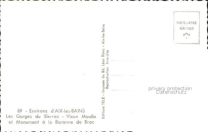 12573116 Aix-les-Bains Les Gorges du Sierraz Monument a la Baronne de Broc postalisch nicht gelaufen Erhaltung siehe scans [AndreD76] KatCode: 11170073273008