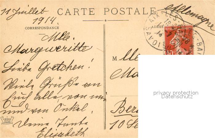 13710792 Aix-les-Bains Place des Bains et Grand Hotel de l Arc-Romain postalisch gelaufen Erhaltung siehe scans [LiesaD40] carte postale Lies Katcode 11170073273008