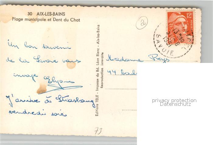 13489778 carte postale Aix-les-Bains Plage municipale et Dent du Chat Alpes postalisch gelaufen Erhaltung siehe scans [FriedD77] KatCode: 11170073273008