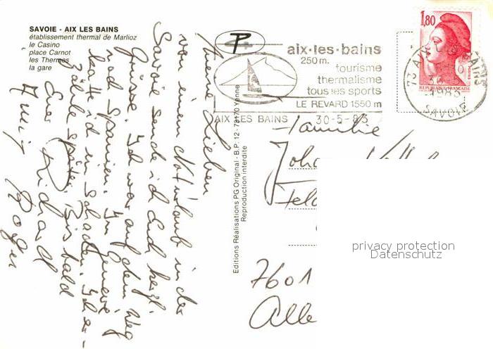 12620715 carte postale Aix-les-Bains Savoie Casino Place-Carnot postalisch gelaufen Erhaltung siehe scans [LiesaD40] KatCode: 11170073273008