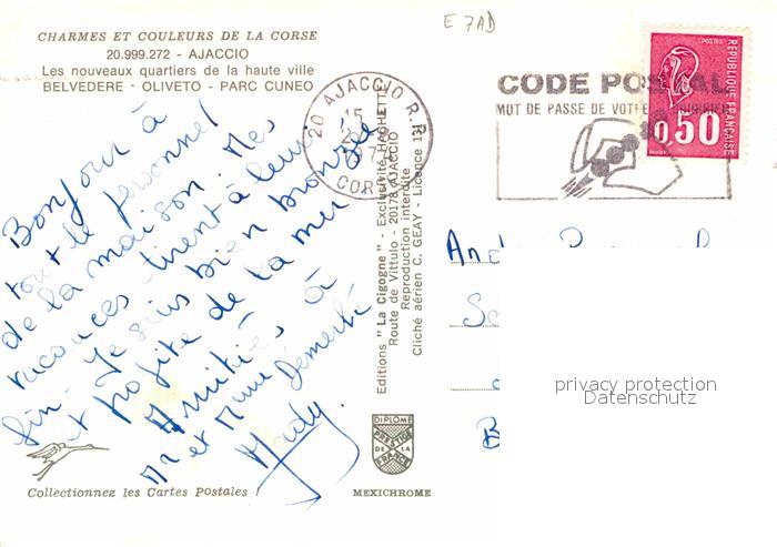 12853034 carte postale Ajaccio Belvedere Oliveto Parc Cuneo postalisch gelaufen Erhaltung siehe scans [NatalD47] KatCode: 1117002A12A004
